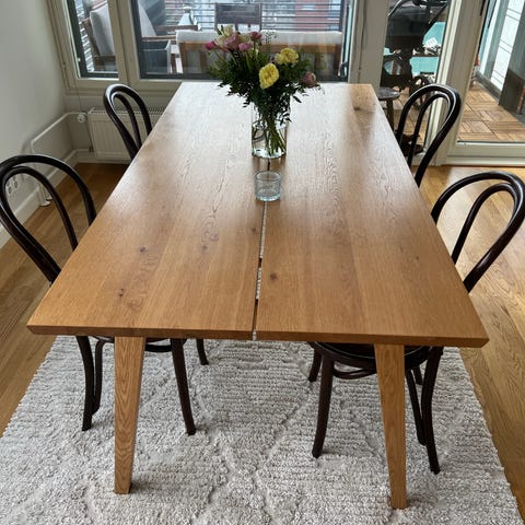 Tammipöydän perinteikkyys yhdistyy modernin minimalistiseen muotokieleen ja käytännöllisyyteen.