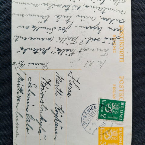 Postikortti 2 mk kolmella lisämerkillä 1946