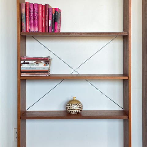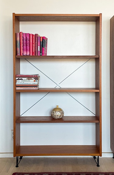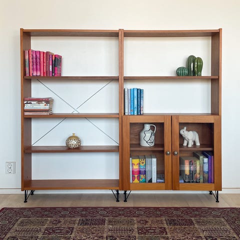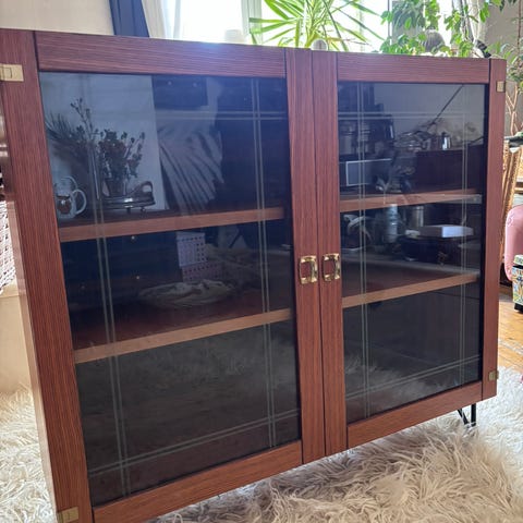 Vintage teak hylly vitriinillä