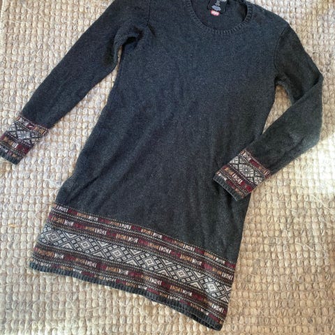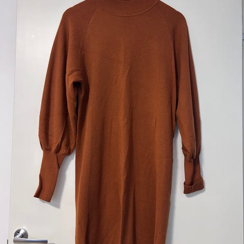 Ruukin kehräämön kotimainen 100 % alpaca royal -neulemekko. Pitkä huppari soveltuu tunikaksi tai mekoksi käyttäjän mieltymysten mukaan. Neuleessa on taskut ja pitkät hihat. Ryhtiä tuovat resorit sekä hihansuissa että helmassa. Lankaa ei ole värjätty, vaan väri on luonnollinen ruskea.