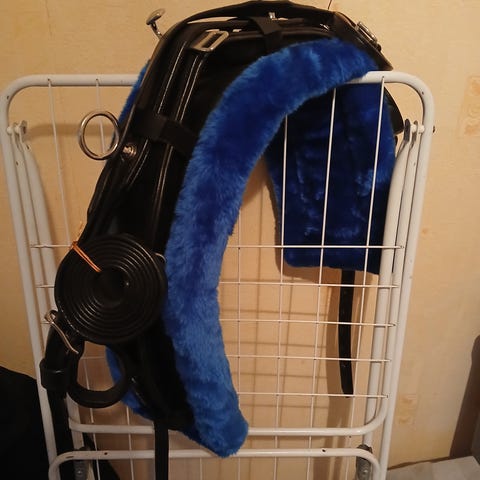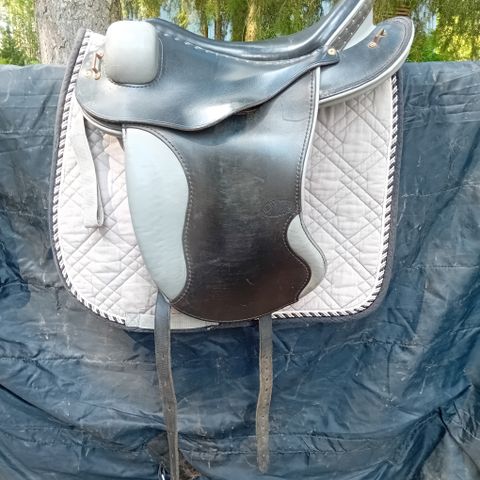 Käyttämätön riimu, todella vähäisellä käytöllä olleet satula, satulalaukku ja aselaukku. (LÄNNEN RATSASTUS).