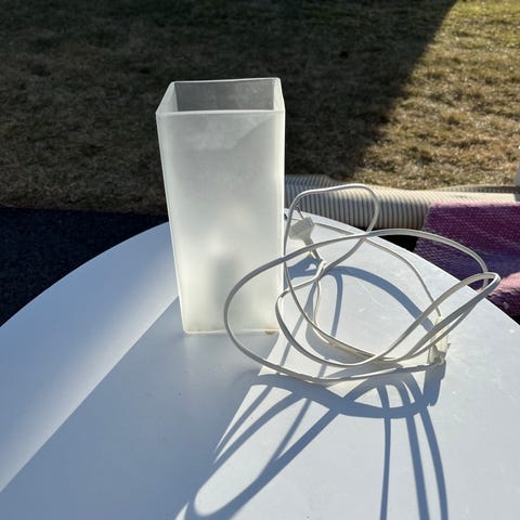 Myytävänä lukuvalaisin, jossa kaksiosainen nivelletty varsi, pöydän tai hyllyn reunaan kiinnitetään puristimestaan. Kääntyvä varjostin mahdollistaa valon tarkan suuntaamisen. Valkoinen, metallia. Kunto hyvä.