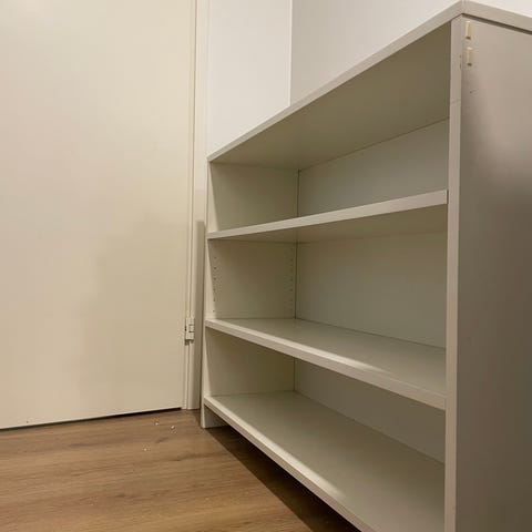 Annetaan musta matala kirjahylly. Kaikenlaista pientä kulumaa mutta tukeva ja toimiva edelleen.
