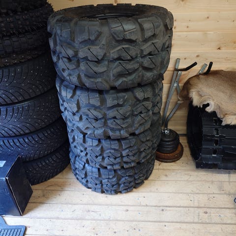 Vähän käytetty rengassarja can-amin jaolla ja peltivanteilla.