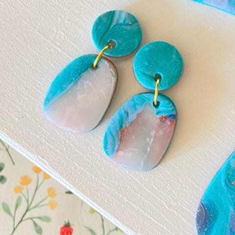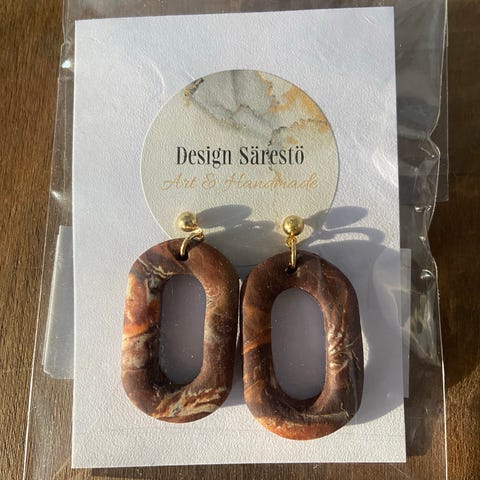 Käsintehdyt korvakorut, koko noin 6 cm.