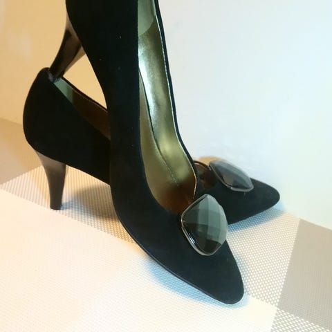 Ecco juhlakengät, koko 37. Naisten malli, jossa matala kapea korko ja terävä kärki. Päällinen vaikuttaa olevan mokkanahkaa beigen sävyssä. Kengissä on sivusta kulkeva remmi ja avoin sisäsyrjä. Sopivat juhla- ja siistimpään käyttöön. Koko ja malli näkyvät kuvissa.
