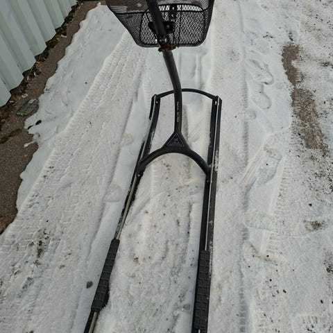 Kicspark Max-potkukelkka jossa lisävarusteina jarrut, vetoadapteri ja liina. Siisti käytetty kunto. Kahvojen pehmusteet hieman kärsineet säilytyksessä ja joku niitä hieman nokkinut mutta haitta kosmeettinen. Vain nouto Parolasta. Hp. 250 €.