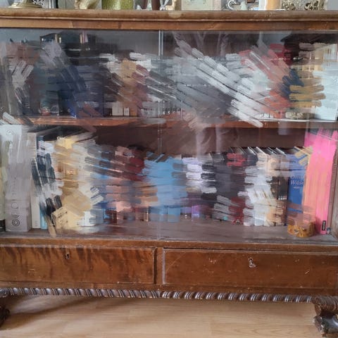 Kaunis vanha kirjahyllykokonaisuus, koostuu kahdesta erillisestä hyllystä. Voi pitää vierekkäin tai erikseen. Yhden hyllyn mitat: korkeus 139cm / syvyys 22cm / leveys 80cm. Vierekkäin pidettynä leveys siis 160cm.