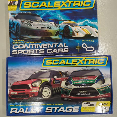 Scalextric Rally Stage autorata. Pakkaus sisältää ralliaiheisen radan sekä kaksi ralliautoa. Rata on sähkötoiminen ja tarkoitettu pöytä- tai lattialeikkeihin. Soveltuu harraste- ja leikkikäyttöön useammalle pelaajalle samanaikaisesti.