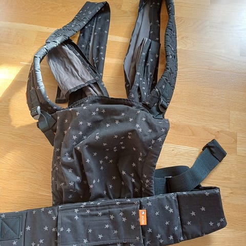 Hyväkuntoinen kantoreppu., väri sininen. Tässä lantiokiinnitys tulee klipsillä ja hartioiden yli reppu sidotaan, eli tavallaan kantorepun ja kantoliinan yhdistelmä. Itselle ollut hyvä, kun lyhyenä kantajana hartiaremmit sai juuri niin kireälle kun tarvitsi. Ehjä ja siisti.