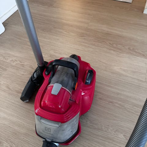 Sähkökäyttöinen sininen Panasonic MC-E775 Lähes uusi.Mallissa portaaton tehonsäätö nokka karva sulakkeet sekä mukaan Varapussi setti Lähetys myös onnistuu!