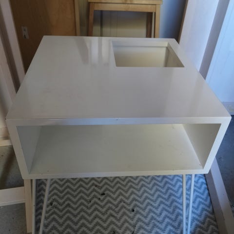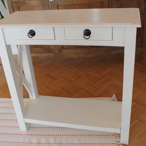 2-värinen sivupöytä, yhdellä laatikolla, laatikon leveys 63cm. Ollut käytössä.