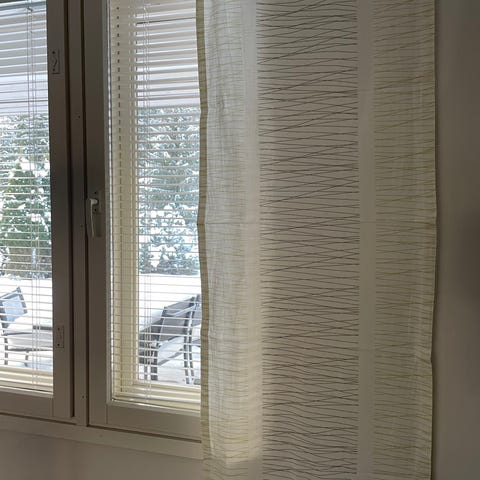 Yhdessä pienistä verhoista on pari vauriota ylhäällä oikeassa reunassa