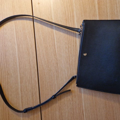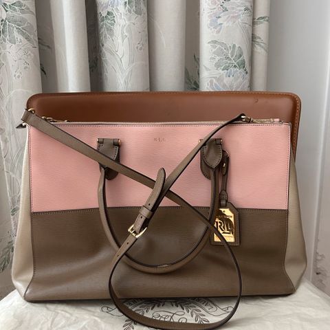Ralph Lauren kangaslaukku naisille. Tummansininen kangasmateriaali, vaaleat olkahihnat kuvioinnilla ja nahkayksityiskohdat. Laukussa on vetoketjullinen sisätasku sekä avoimia sisätaskuja pienten tavaroiden säilytykseen. Sopii arkilaukuksi ja mukaan esimerkiksi töihin tai vapaa-aikaan.