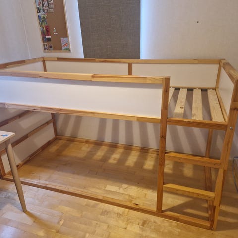 IKEA släkt sänky, jossa valkoinen runko ja puinen sälepohja. Sopii yhden hengen patjalle. Sängyssä on päätylevy ja sälepohja tukee patjaa. Soveltuu esimerkiksi makuuhuoneeseen, vierashuoneeseen tai lastenhuoneeseen yksittäiseksi vuoteeksi.