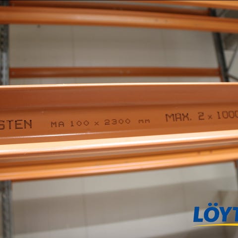 Vankka teräsrakenne takaa pitkän käyttöiän ja luotettavan kantavuuden vaativassakin käytössä. Päätyelementti toimii kuormalavahyllyn sivurunko-osana ja mahdollistaa palkkien sekä muiden KASTEN K75 -järjestelmän osien helpon ja joustavan asennuksen.
