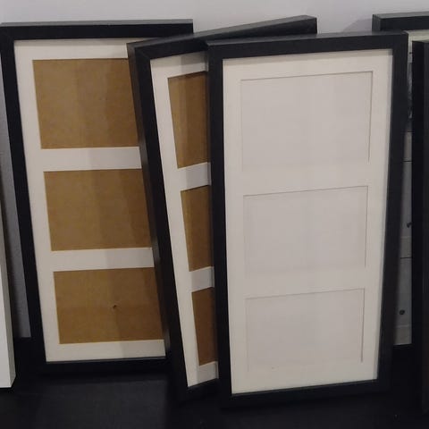 Sisustustauluja ja -kehyksiä sekä yksi vapaa/varattu-kyltti (valmistaja diagnoosi sisustusmania vuodelta 2015).