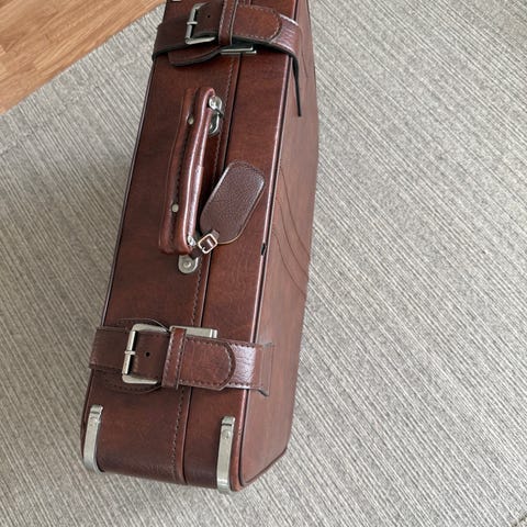 Selkeästi maailmaa nähnyt retro matkalaukku. Ok kunnossa, ehjä. Lukot "toimivat", mutta tähän ei ole avaimia. Vain nouto, Helsinki Pihlajamäki.