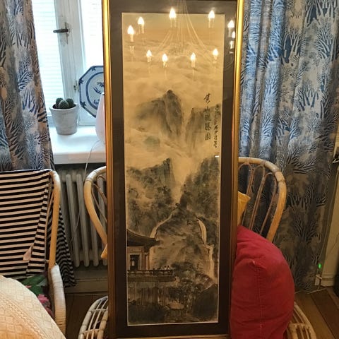 Öljymaalaus, kuvaa niitä perinteisiä luola asuntoja, joissa puhemies Mao myös