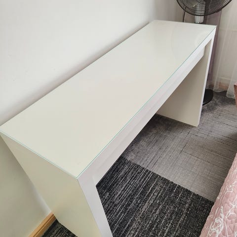 Myydään Ikean MALM meikkipöytä, kunto hyvä mutta löytyy käytönjälkeä. Päällä lasilevy, jonka saa nostettua helposti pois. Mukaan saa halutessaan kuvassa näkyvän tuolin ja peilin.
