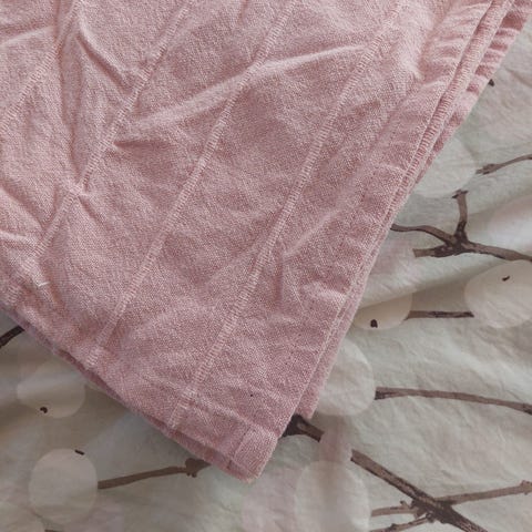 Uudenveroinen vaaleanpunainen Ikean päiväpeitto 150 cm x 250 cm. 100% puuvillaa. Kuvissa ryppyinen koska ollut pitkään käyttämättömänä.