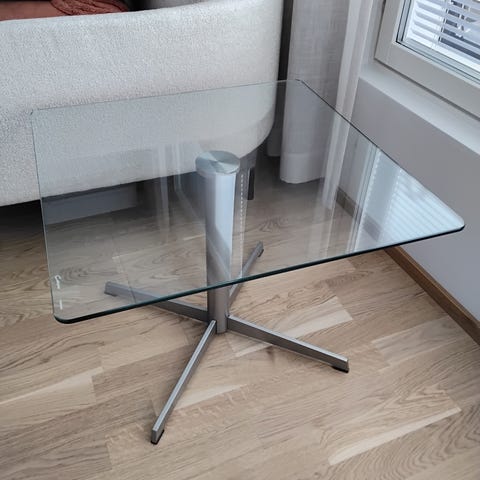Suuri lasinen sohvapöytä merkiltä Gastone Rinaldi. Tumma lasi.