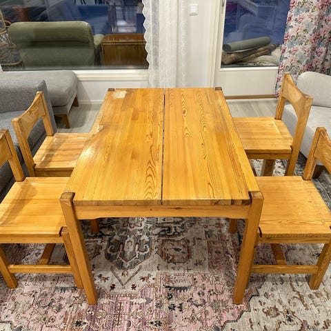 Vanha ruokapöytä + 6 tuolia