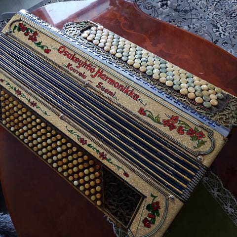 Myydään otsikon mukainen harmonikka. Täysin kunnossa oleva, mutta luonnollisesri elämää nähnyt. Lisätietoja harmonikan historiasta kysyttäessä.