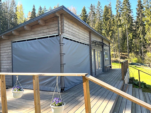 Vielä kertauksena kyseessä on Suomessa valmistettu pressukangas, jota muokataan Suomessa käsitöinä asiakkaan mittojen mukaan. Ostamalla meiltä tuet suomalaista työtä!
