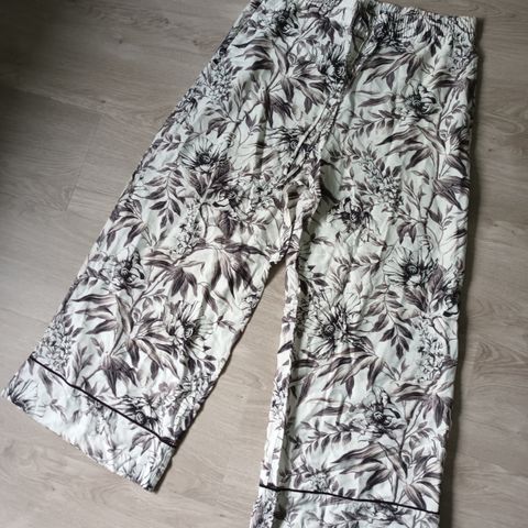 Polan ihanat liehulahkeiset ohuet kukkahousut koko L. Vähän käytetyt ja hyväkuntoiset, kaapissa hieman rypistyneet. Vyötärö venyttämättä 46cm ja venyy tästä muutaman sentin, lahkeen pituus n.77cm. Koiratalous.