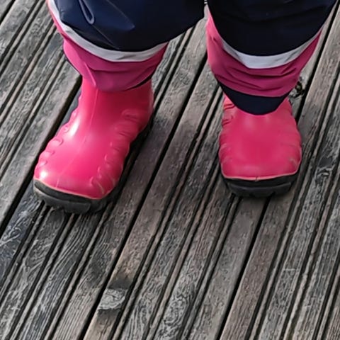 Loikaten vanhempi versio. Taipuisa neopreenivarsi tuo mukavuutta. Ulkopinta pesty ja vedenpitävyys tarkistettu. Ulkopohjassa kantapään kohdalla kulumaa. Yleisilme siisti. Tyypillistä värjäytymää ulkopinnassa. Sisältä kengät on imuroitu. Väri on tummapinkki. Sisäpohjallinen noin 17,5 cm.