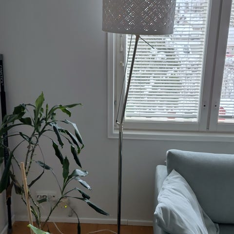 Musta ikean Skaftet lattiavalaisin ilman varjostinta. Pieniä jälkiä lampun jalassa (3. kuva)