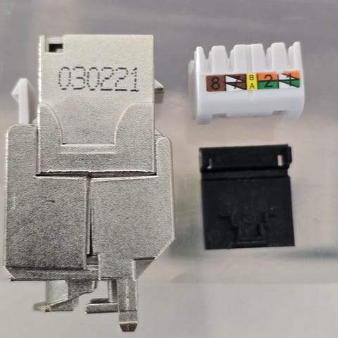 Weidmüller 1963600000 RJ45 STP kenttäasenettava liitin verkkokaapeleille, ei tarvitse krimppaus työkalua. 9 kpl, käyttämättömiä liittimiä. Cat 6a.