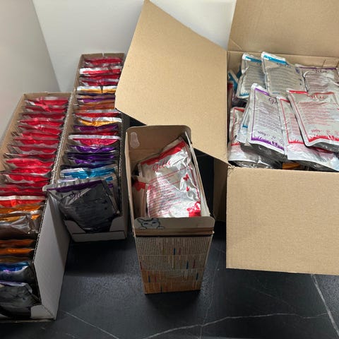 Kullanmurulta jäi 2kpl Whiskas 400g ankanmakuista tölkkiruokaa, 9kpl Whiskas 400g kananmakuista tölkkiruokaa ja Cattia hajusteetonta kissanhiekkaa 7,2kg sekä 4kg Friskies kuivamuonaa, säkissä oli alunperin kuivamuonaa 7,5kg. Vain nouto tai tuon jos ei tarvitse useiden kymmenien kilometrien päähän tuoda. Ja myyn koko satsin kerralla, en myy siitä osia. Ja käteismaksu.