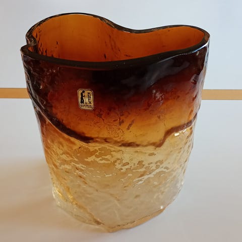 Kumela Oy:n valmistama Kallio maljakko hopeisella laatalla. Korkeus 20cm