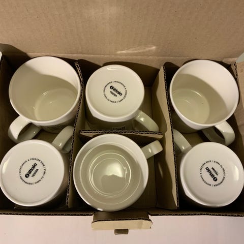 6 kpl Iittalan valkoisia teema mukeja. Lähes uusia ja olleet vain kaapissa lojumassa. Kaikki täysin ehjiä, eikä mitään pinttymää/värjäymää näissä ole. Kaikissa tarrat kiinni.