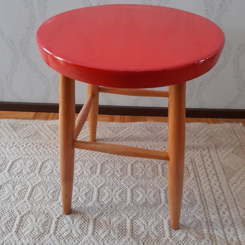 Ostetaan 3-4 jakkaraa, joissa neliönmuotoinen istuinosa. Mieluusti puuta, koska oltava materiaalia, jonka voi maalata. Jalat saavat olla metallia.