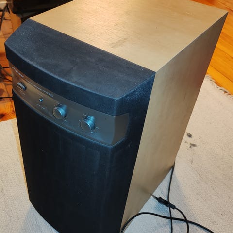 Yamaha YST-SW216 subwoofer. Aktiivinen subwoofer kotiteatteri- tai stereokäyttöön. Teho 45 W, käyttöjännite 230 V / 50 Hz. Kotelo viimeistelty mustalla pinnalla, etupuolella irrotettava suojaritilä ja takana bassorefleksiputki sekä liitännät vahvistimelle. Sopii matalien äänien toistoon esimerkiksi elokuvia ja musiikkia varten osana äänentoistojärjestelmää.