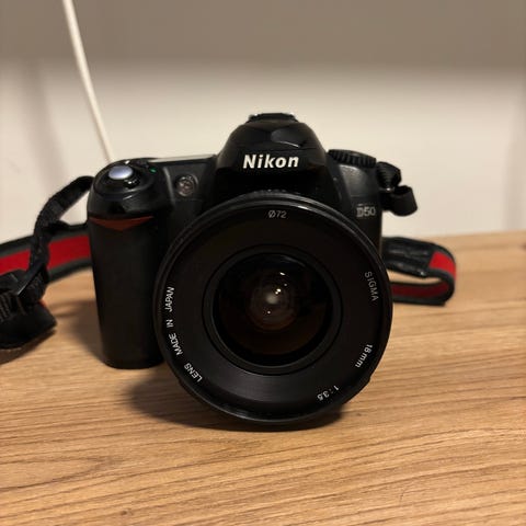 Objektiiveja Nikonin järjestelmäkameraan Sigma 18-200 mm, Nikon 50 mm ja 35 mm