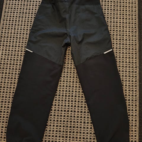 Siniset, kovassa käytössä olleet, mutta ehjät housut. Lahkeissa lumilukot, vyötäröllä kavennus mahdollisuus tarroilla, kiinnitys vetskarilla ja napilla, tarrallinen reisitasku, sivutaskut vetskareilla, takataskut tarroilla. Polvissa ja pehvassa kulumaa mutta kangas täysin ehjä