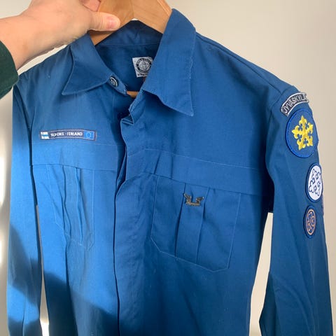 Sudenpentujen partiopaita. Koko 152. Vasemmassa hihassa pienen pieni reikä.