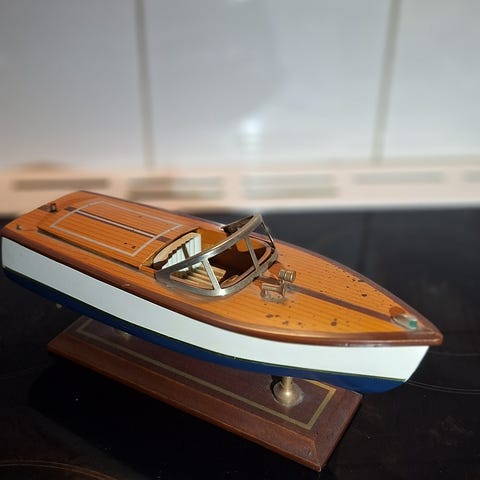 Jenkki tyylinen vintage kalastusvene rakennussarja. Pakkaus ajan saatossa saanut damagea, mutta kaikki rakennussarjan osat priima kunnossa.