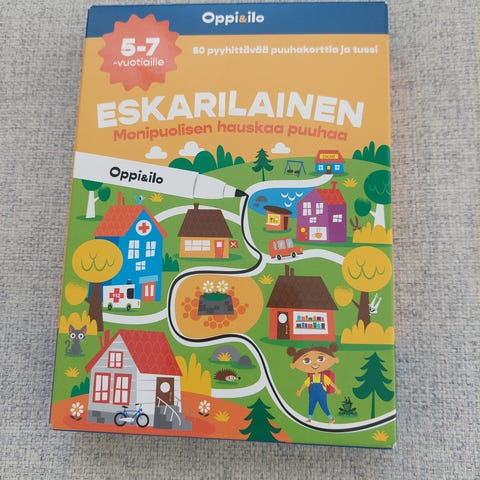 Oppi ja ilo puuhakortit. Näitä on paljon käytetty ja kortit menneet sekaisin pakkauksessa. Pakkauksessa ja korteissa käytönjälkeä. Granit uusi pyyhittävä tussi.