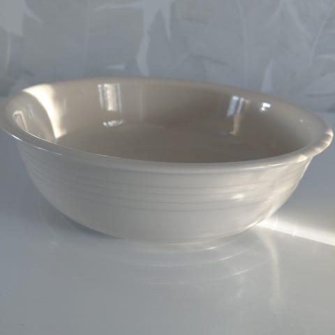 Soppakulho, ei lohkeamia hyvä kuntoinen, kannessa kauhan reikä.