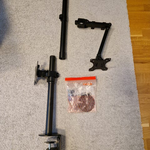 Näyttöteline kahdelle näytölle.