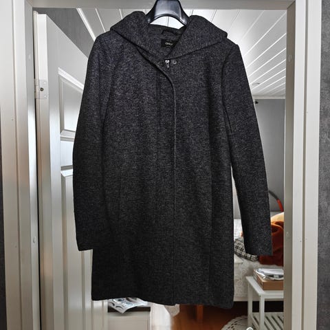 Vero Moda pitkä villatakki, koko M. Harmaa naisten takki, jossa vyötäröllä solmittava vyö ja leveä kaulus. Materiaalina villa.