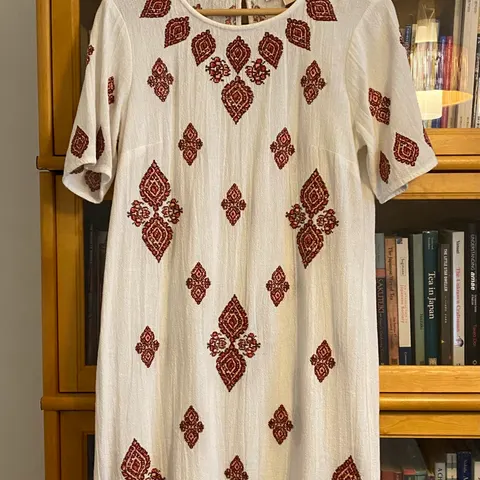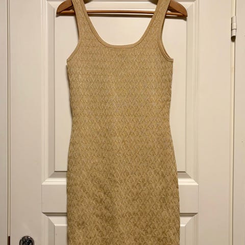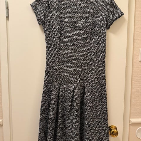 Koko M, neulos on napakkaa mutta joustaa hyvin. Vastaa merkin kokoa. Pituus olalta henkarissa mitattuna 95cm.