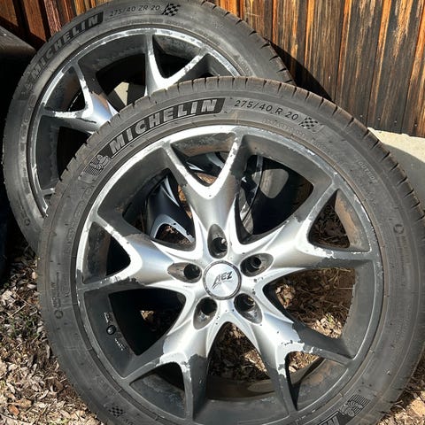 Kumeina Michelin Pilot Sportit, jotka ovat ikänsä puolesta jo vaihtokunnossa. Renkaissa on kuitenkin vielä kulutuspintaa jäljellä.