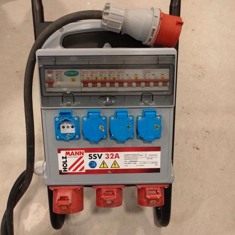 Työmaan alakeskus 32 A. 4 x Schuko + 16A CEE + 32 A CEE.