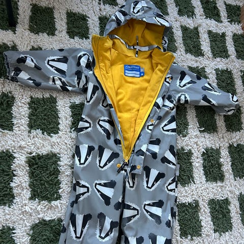 Superkäytännöllinen Jonathanin tikkivuorellinen sadehaalari kokoa 98 😍